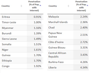 Ma quali sono i paesi che utilizzano di meno internet? E cosa hanno in comune?