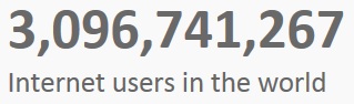 La nostra attenzione va immediatamente sul primo numero, “Internet Users in the world“, un contatore frenetico che, ad oggi, indica tre miliardi e novantasei milioni di utenti.