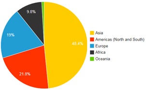 Da questo grafico, ad esempio, si evince come solo il 9,8% dei cyberutenti proviene dal continente africano.